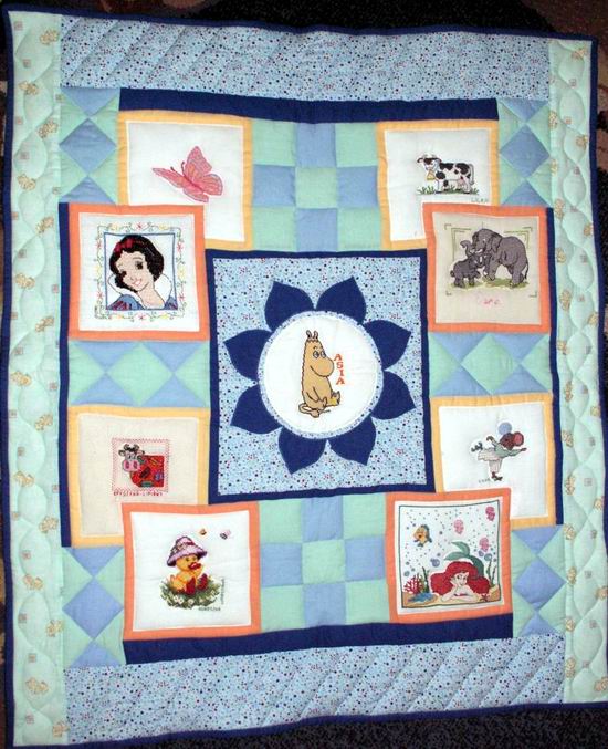 Na kołderce znalazły się kwadraciki wyszyte przez: