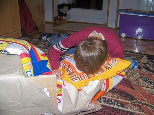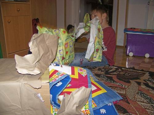 Raduś otrzymał kołderkę przeddzień swoich urodzin. Radość była