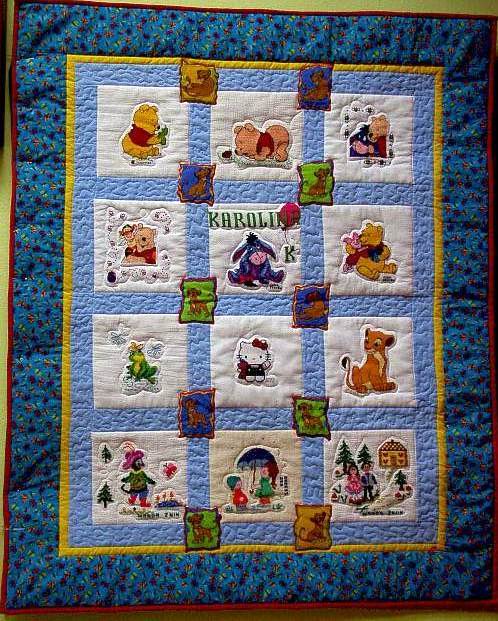 Na kołderce znalazły się kwadraciki wyszyte przez: