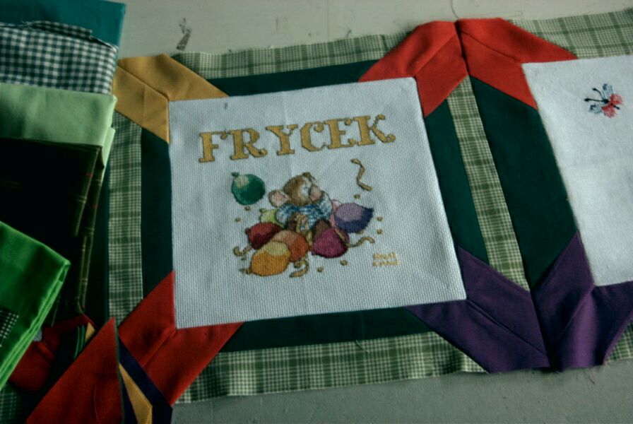 wyszywaj±cych kwadraciki na tę kołderkę: "Nasza kołderka skończona .(...). Szyło sie