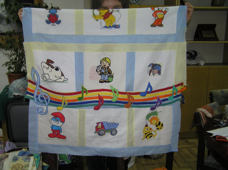 postanowiła, że na kołderce zadomowi się pięciolinia, kolorowe nutki i