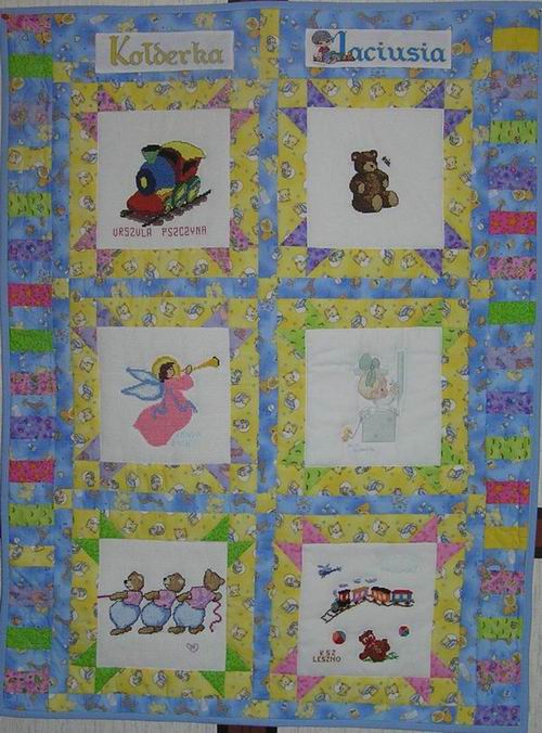 Kołderka Jest prześliczna, te obrazki wyhaftowane: