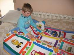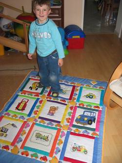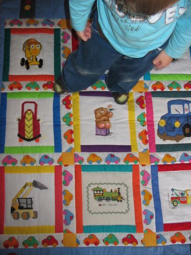 Mamy sporo zdjęć związanych z tą kołderką. Kilka z powstawania kołderki