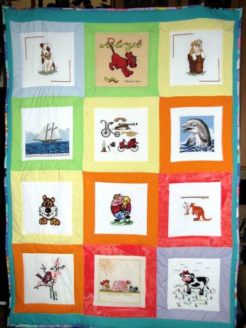 Na kołderce znalazły się kwadraciki wyszyte przez: