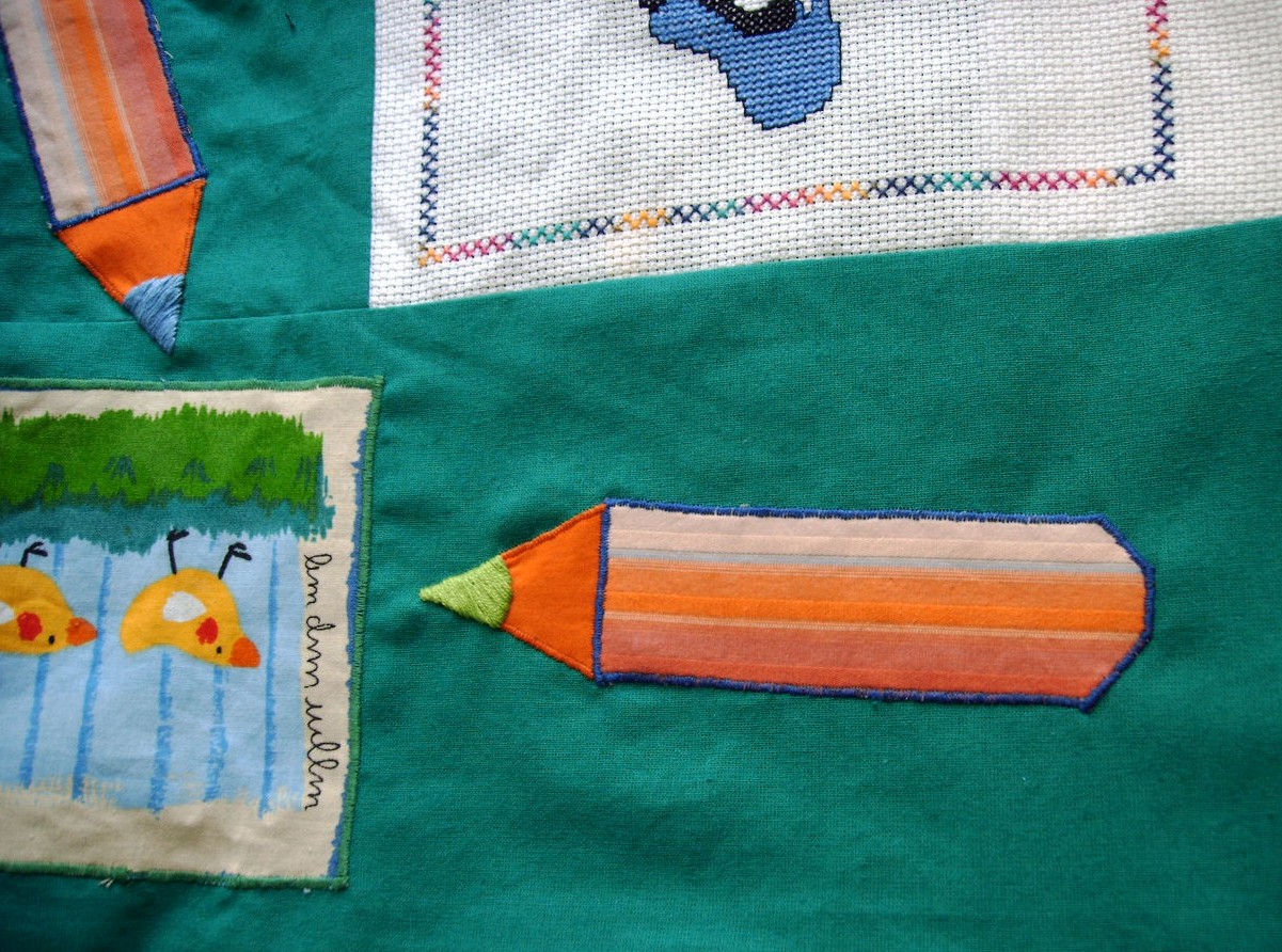ręcznie. Koło kredek i przepięknych haftowanych kwadratów