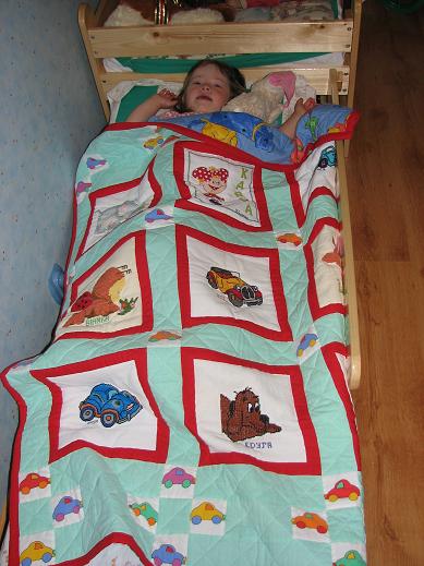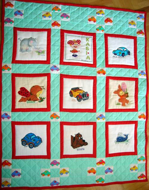 na niej samochodziki i zwierzątka - to co Kasia lubi najbardziej. Hafty