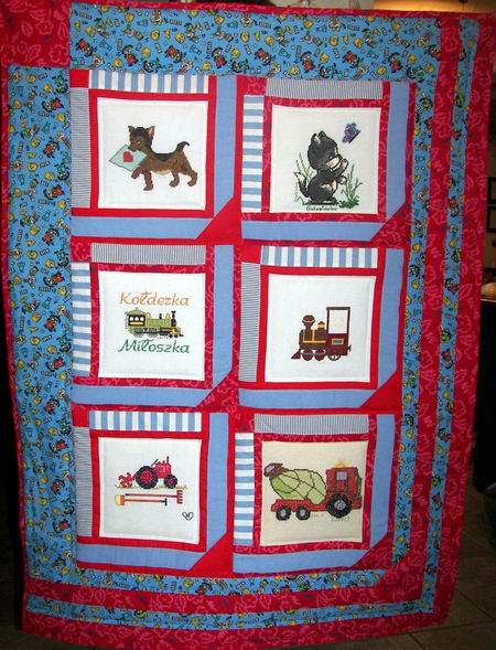 Kwadraciki na tej kołderce zostały wyszyte przez: