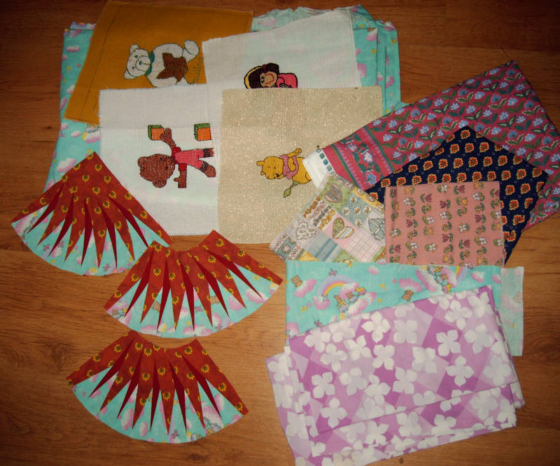 kilka zdjęć pokazujących jak powstawała kołderka: