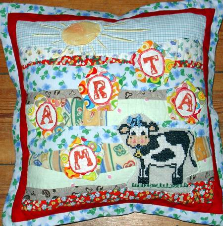 siostry Iwonki, cebulka uszyła podusię z krówką. Kwadracik podarowała Halina z Jasła.