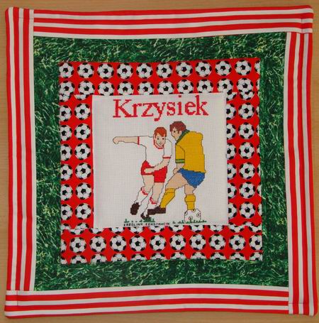 otrzymał poduszkę uszyt± przez Magdę z kwadracika wyszytego przez Karolinę z Konstancina (K_K_Karol)