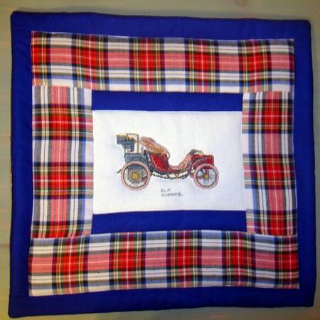 zabytkowym samochodem, który wyhaftowała Ela z Supraśla