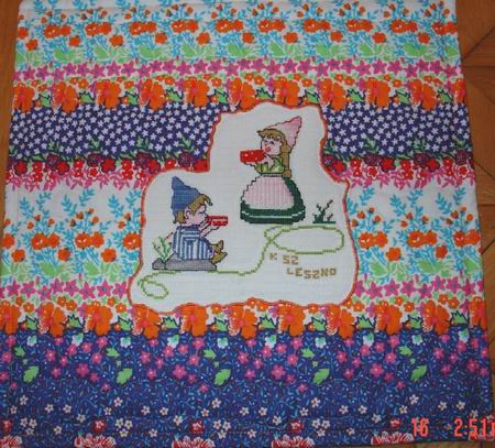 zachęca go do ćwiczeń, otrzymała podusię przytulankę uszyt± przez RenięS z kwadracika podarowanego