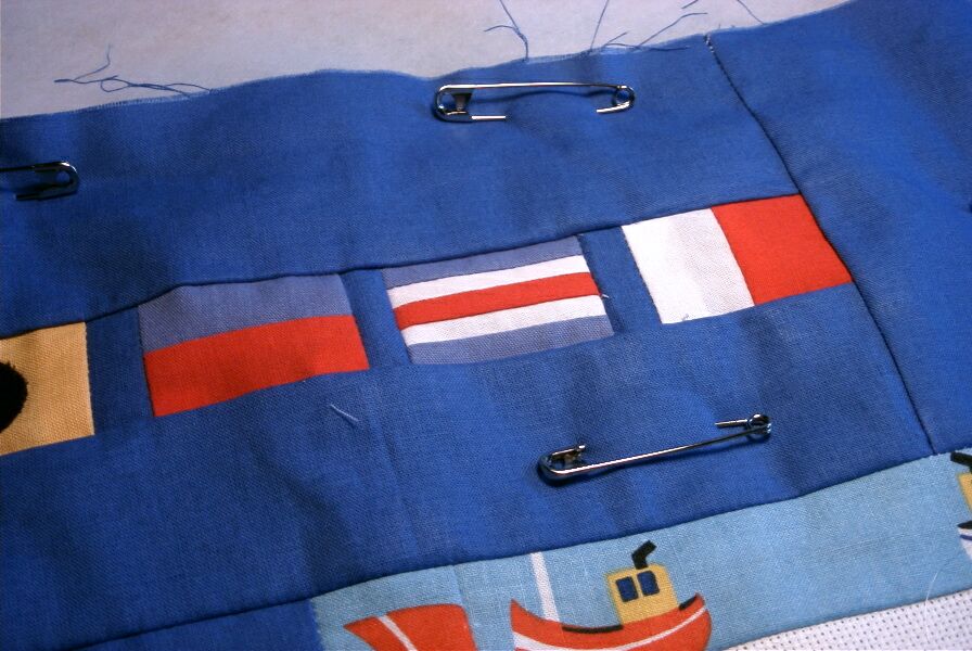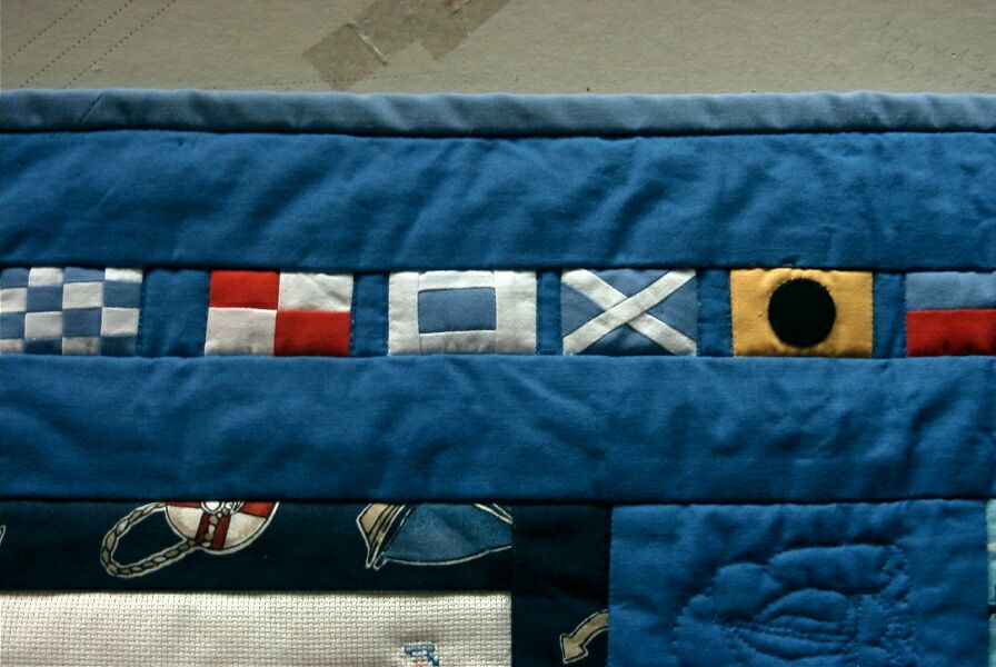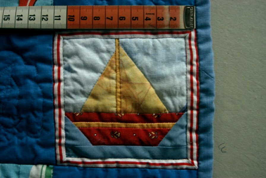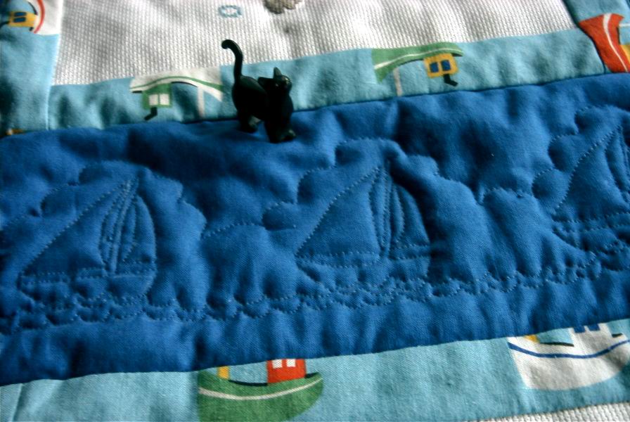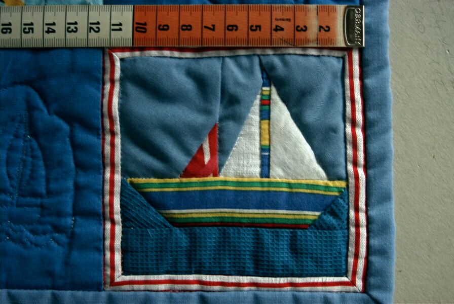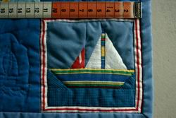 więc na jednym z kwadracików wyszyła dwóch malutkich marynarzy i resztę