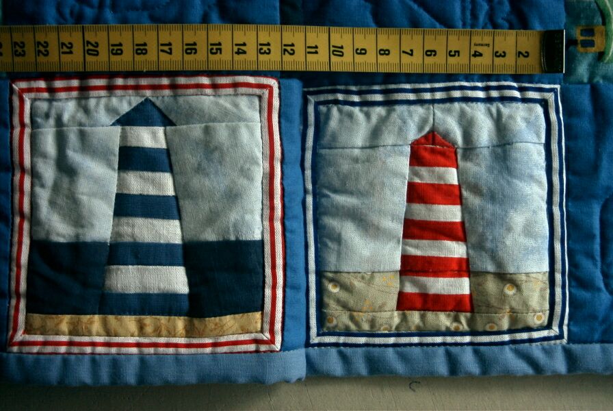 uszyła latarnie morskie, żaglówki, gwiazdy. Są też flagi