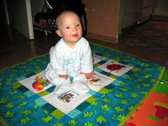 lubi bawić się na swojej kołderce,