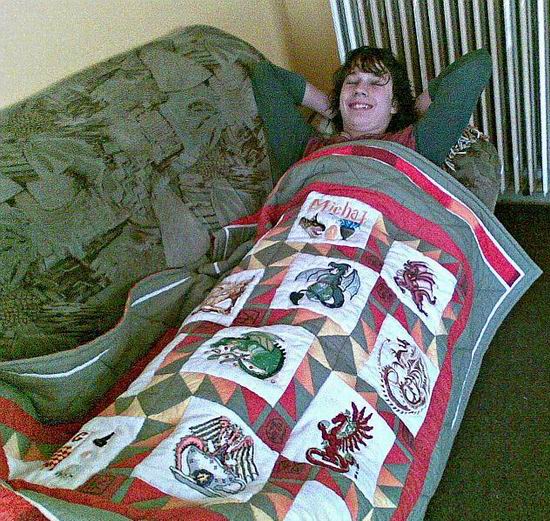podziękowania od Mamy Michała i Michał ze swoją kołderką