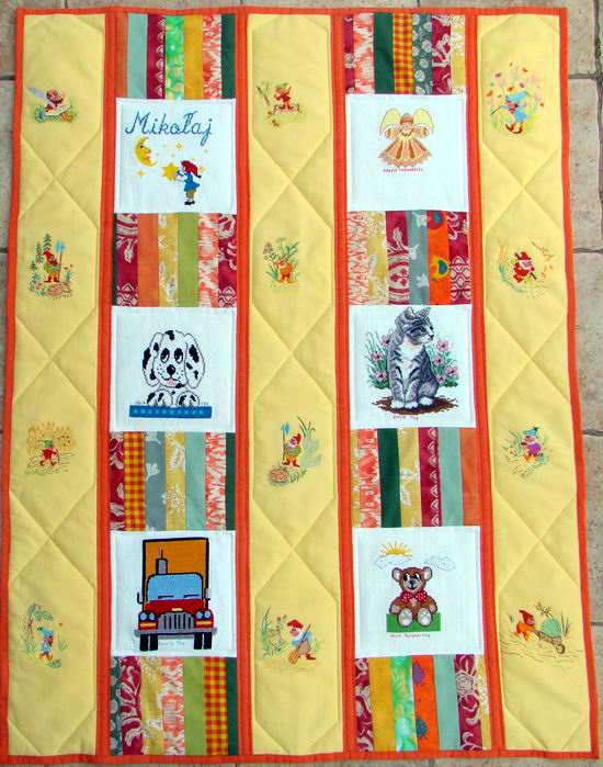 Kwadraciki na tę kołderkę zostały pieknie wyszyte przez: