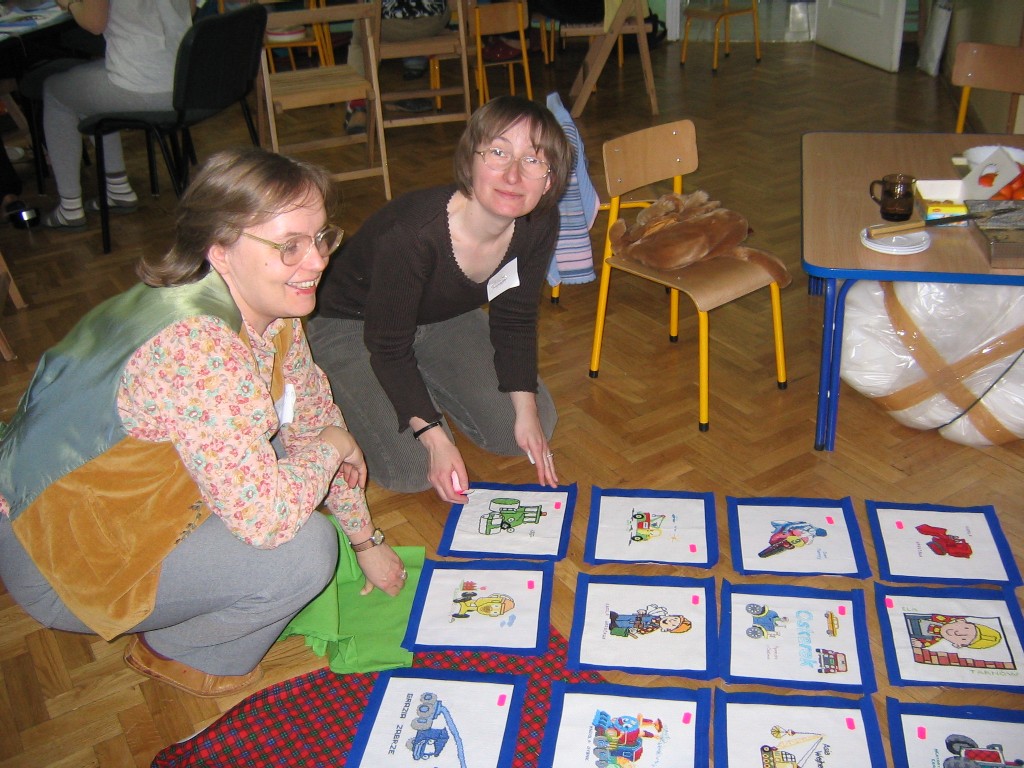 zostały wyhaftowane zaraz przed kursem szycia kołderek, który odbył się