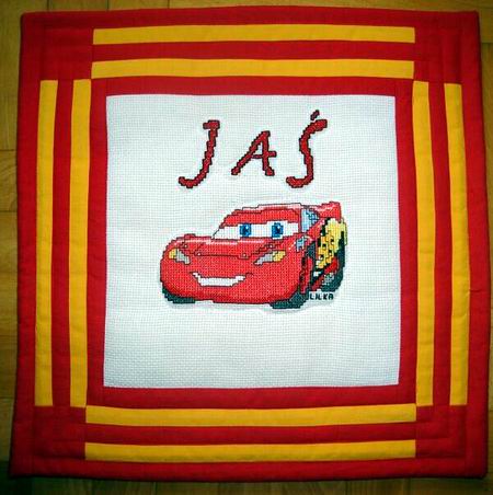 przygotowałyśmy poduszeczkę przytulankę z Zygzakiem z bajki Auta. Haft