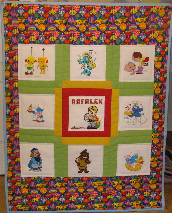 skończył składanie z cegiełkowych literek imienia własciciela kołderki.