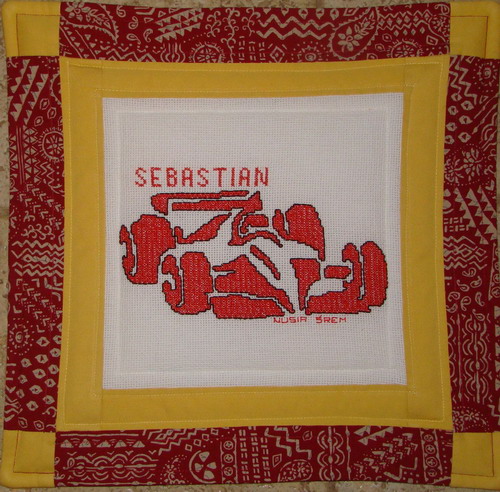 przez MagdęK. z kwadracika z wyścigówką, wyhaftowanego przez Nusię ze