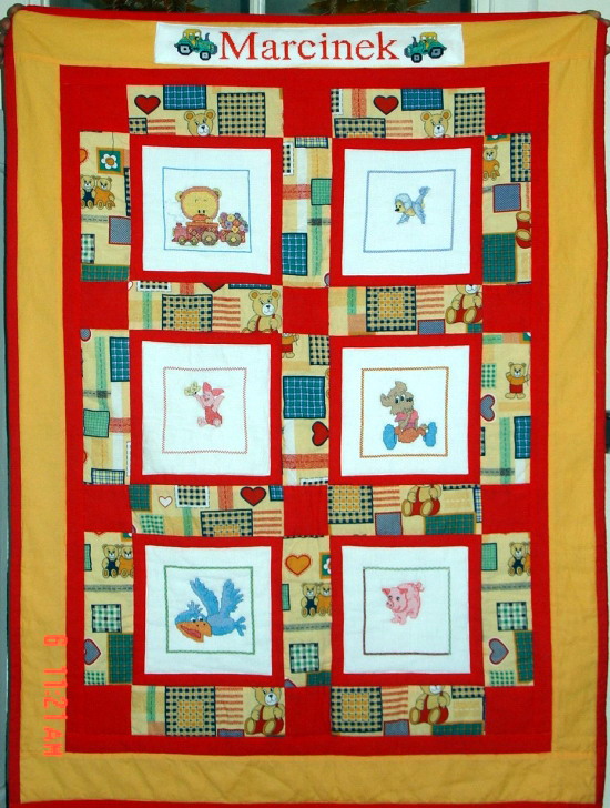 kwadratów, wyszytych na kołderk Marcinka