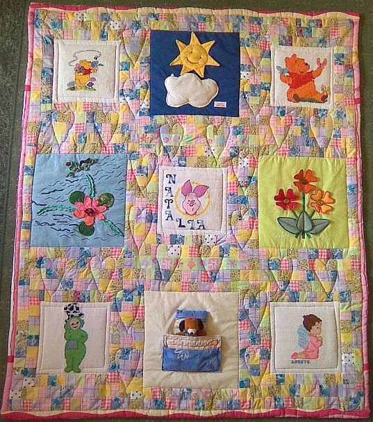 W wyniku porażenia dziewczynka ma kłopoty z chwytaniem przedmiotów, dlatego kołderka poza ślicznymi haftami zawiera elementy ciekawe dotykowo,