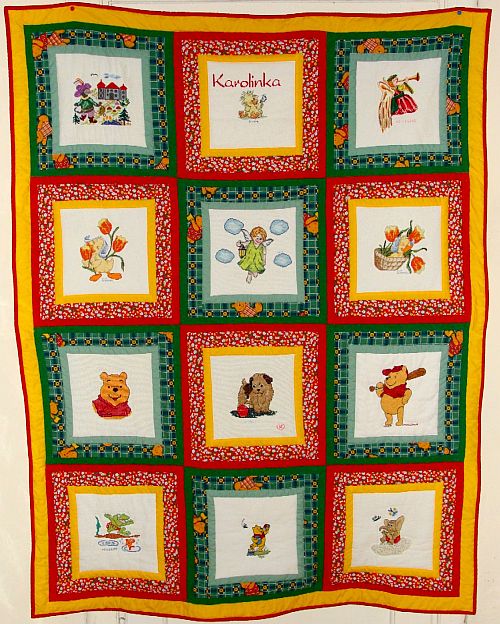 Kwadraciki na kołderkę wyhaftowały: