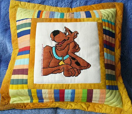 wyhaftowaną przez Karolinę z Konstancina postacią Scooby Doo.