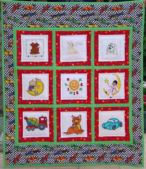 Kwadraciki na kołderkę wyhaftowały: