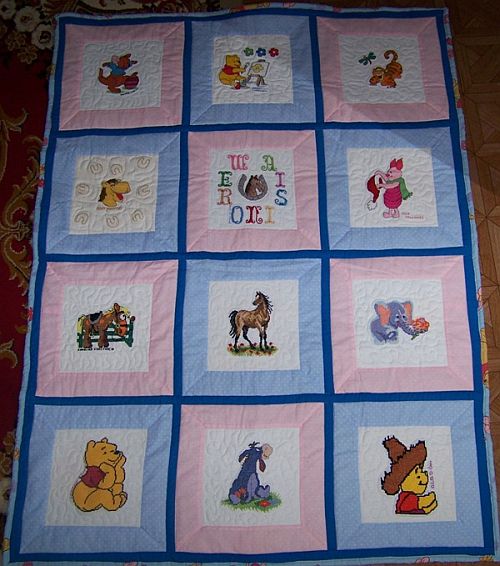 różu z błękitem. Weronika zaprosiła na swoją kołderkę przyjaciół ze Stumilowego Lasu.