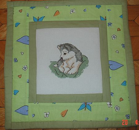 Ponieważ rodzeństwo Kasi jest już dorosłe, poduszkę z pieskiem uszytą przez