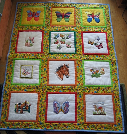 wykończyła kołderkową łączkę pięknymi aplikacjami motylków. Tak więc Zuzia ma teraz kawałek własnej, pełnej kwiatów i motyli łąki, na której zmęczona trudnymi
