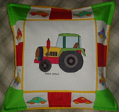 Damian - uszytą przez Pierzastą z wyhaftowanym przez Zosię z Jasła traktorem.