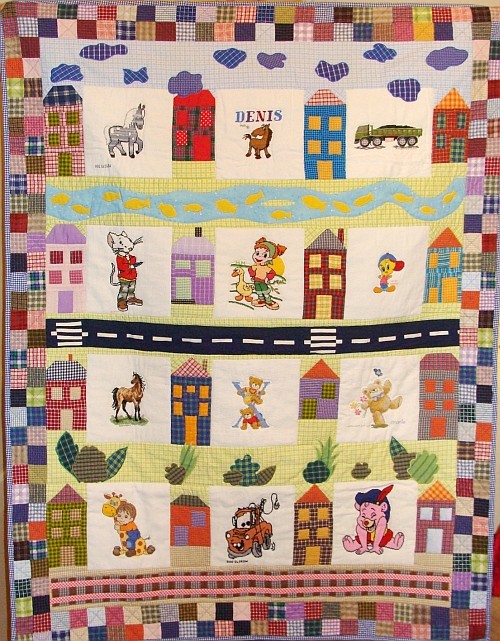 Kołderka dla Denisa to efekt prawdziwej zbiorowej pracy: kołderkę uszyła cała brygada.