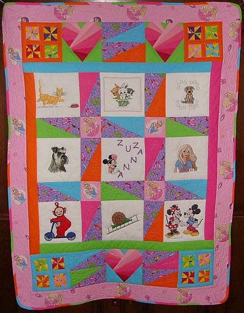 To prawda, bo na kołderce znalazły się serduszkowe aplikacje, kolorowe wiatraczyki i piękne królewny. Zuzia lubi zwierzęta ,