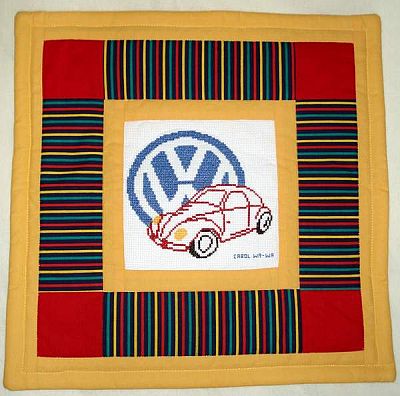 z pieskiem wyhaftowanym przez Grazię z Zabrza, a Mariuszek - z autem wyhaftowanym