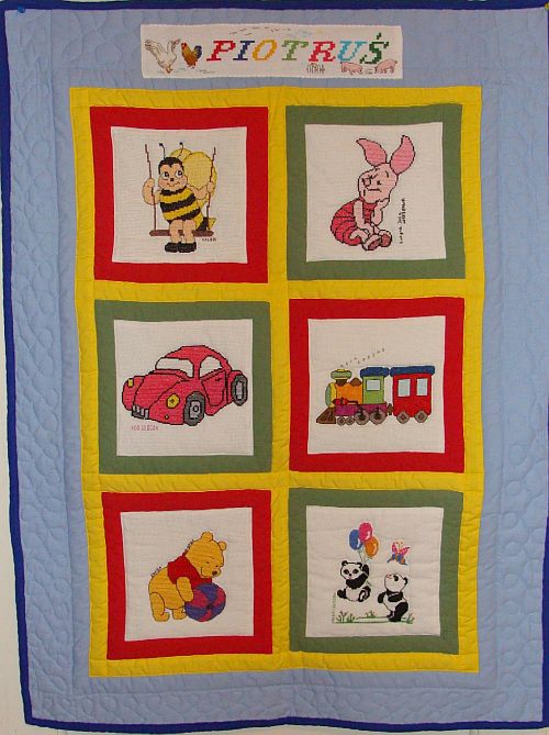 To wesoła kołderka, na której wspólnie bawi± się mieszkańcy Stumilowego Lasu, pszczółka, która hu¶ta się na hu¶tawce, puchate pandy z kolorowymi balonikami.