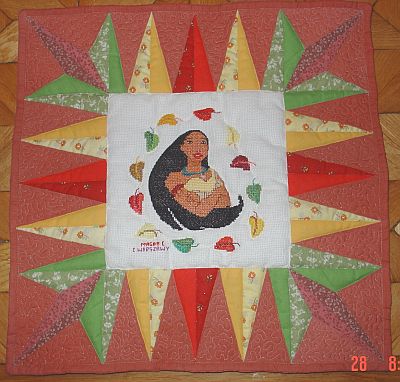 Jolcię za Szczecina poduszki z wyhaftowaną przez MagdęC z Warszawy Pocahontas.
