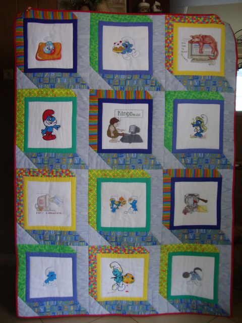 Na kołderce pojawiły się też postacie ze Smerfowej Wioski: najmądrzejszy i jeden z najstarszych smerfów - Papa Smerf, który z każdej sytuacji potrafi znaleźć