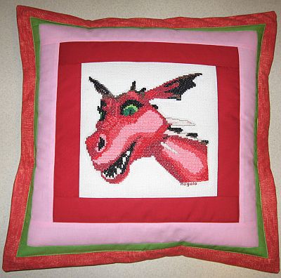 poduszka ze smokiem wyhaftowanym przez Hogatę, a do Mateusza - uszyta przez