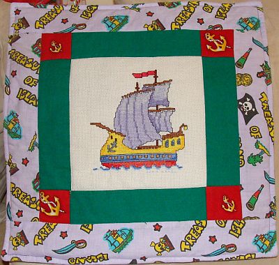 maje 36 poducha z wyszytym przez Aisiek żaglowcem.