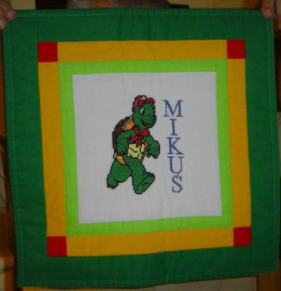 Poduszkę dla Mikołaja uszyła Teńka, która wspólnie z Karoliną stworzyły turboszybki duet szyciowy. A po poduszce dziarsko kroczy