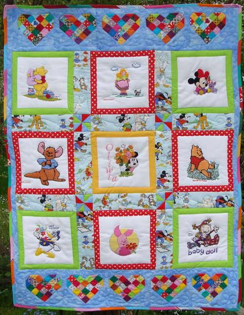 wraz z przyjaciółmi. Wesoł± kołderkę uszyła Grazka, która wykonała dodatkowe aplikacje z łaciatych serduszek.