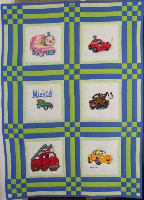 Cebulka, czyli Ulka z Warszawy w ten sposób opisała w galerii pracę nad kołderką dla małego fana motoryzacji: a wiecie,