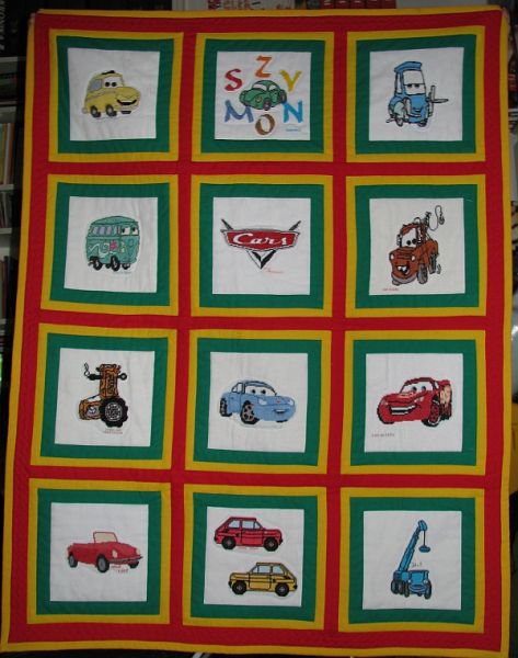 Kołderkę w kolorach zielonym, żółtym i czerwonym dla Szymusia uszyła Karolina z Konstancina.