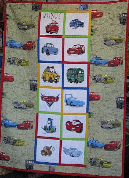 Kubuś jest fanem filmu "Auta" dlatego na kołderce materiał przodu jak