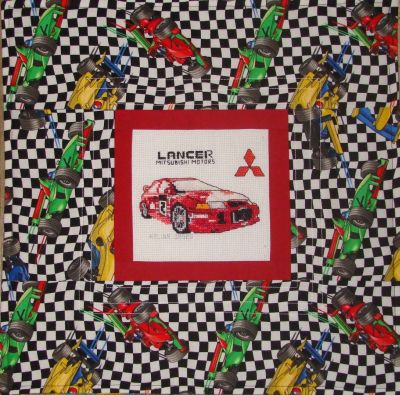 Mateusz otrzymał poduszkę z samochodem wyhaftowanym przez Halinę z Jasła.