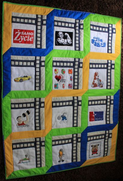 lubi "Strong Manów" więc kwadrciki z siłaczami znalazły się na kołderce.
