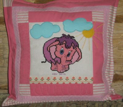 Madzia otrzymała poduszeczkę ze słonikiem wyhafowaną i uszytą przez Agnieszkę ze Szczecina